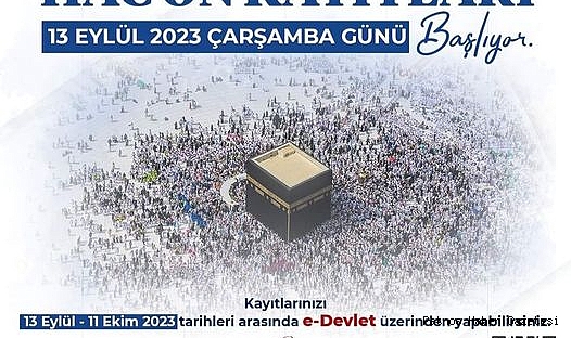 "2024 yılında hacca gitmek üzere ilk defa müracaat etmek isteyen vatandaşlarımıza yönelik ön kayıtlar 13 Eylül'de başlayacak.