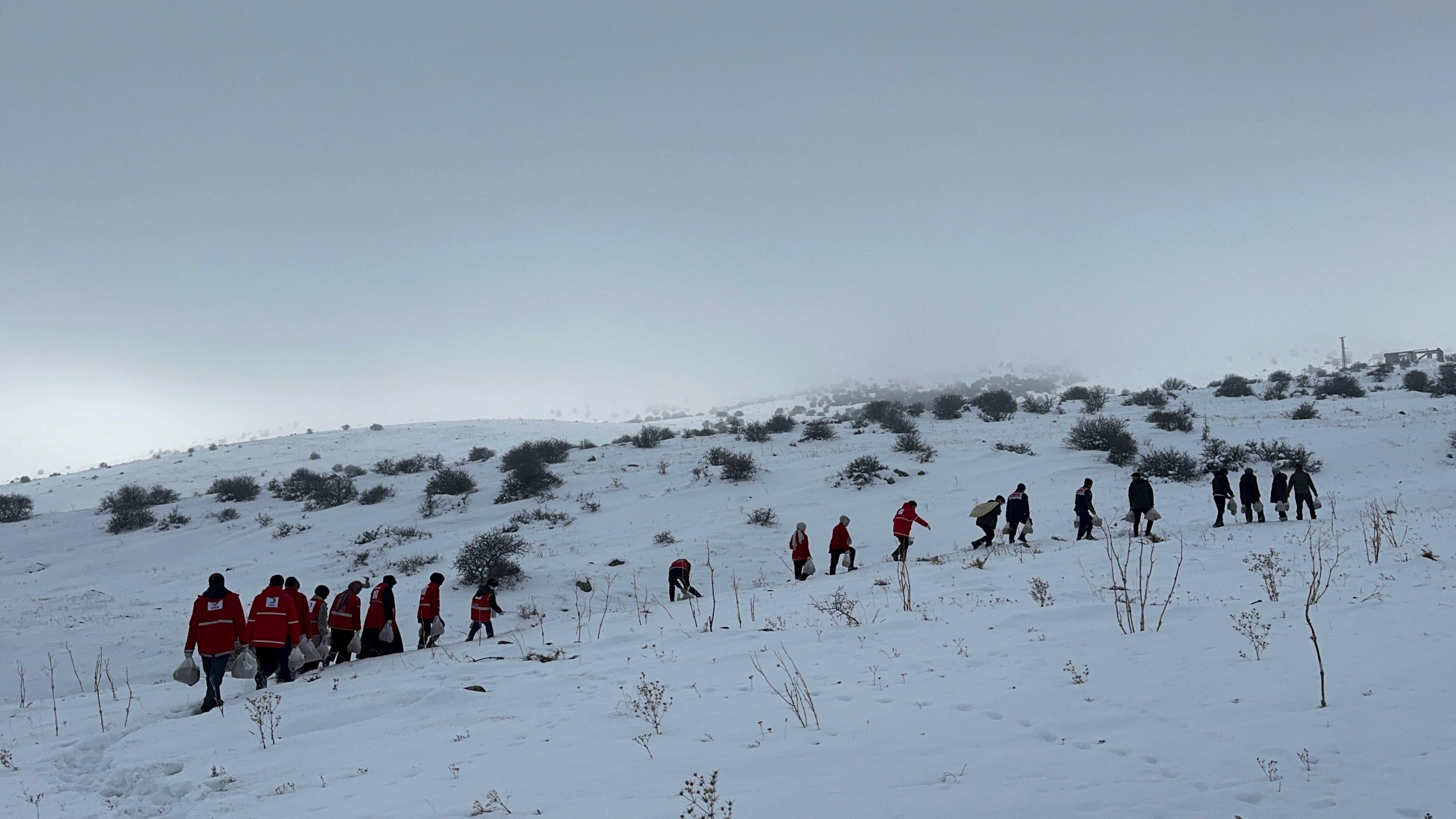 Güzel bir faaliyet oldu. Yaklaşık 2 bin rakımdayız şuan, 1 tona yakın yem dağıttık, buğday dağıttık. Buda onların yaşam alanlarını Doğa Koruma’daki ekipler biliyorlar, zaten yürürken aslında ayak izlerini de gördük. Ağaçların diplerine, taşların yanlarına, böyle zemin noktasında hafif bir kuruma olduğu ve onların yiyecek bulacakları alanlara gönüllülerimizle beraber gelip yem bıraktık. Kış sezonu boyunca yer yüzü karla kaplıyken bizlerde yer yüzünde yaşayan canlıları düşünmek için sahada olmaya devam edeceğiz” ifadelerini kullandı.