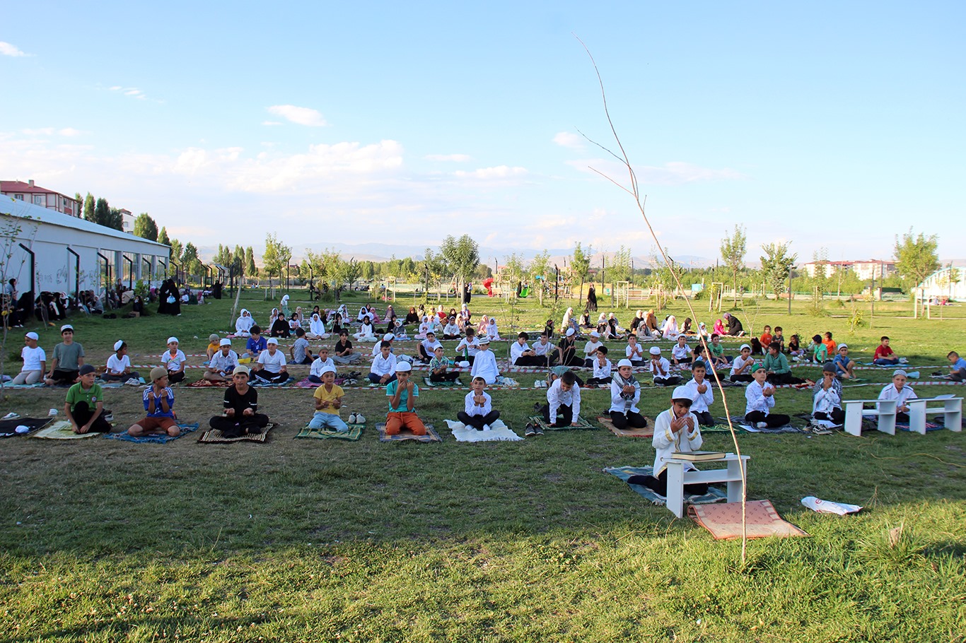 Kur'an Nesli Platformu tarafından gerçekleştirilen "Hayat Namazla Güzeldir" programı kapsamında onlarca çocuk Ağrı Millet Bahçesinde saf tutarak cemaatle namaz kıldı.