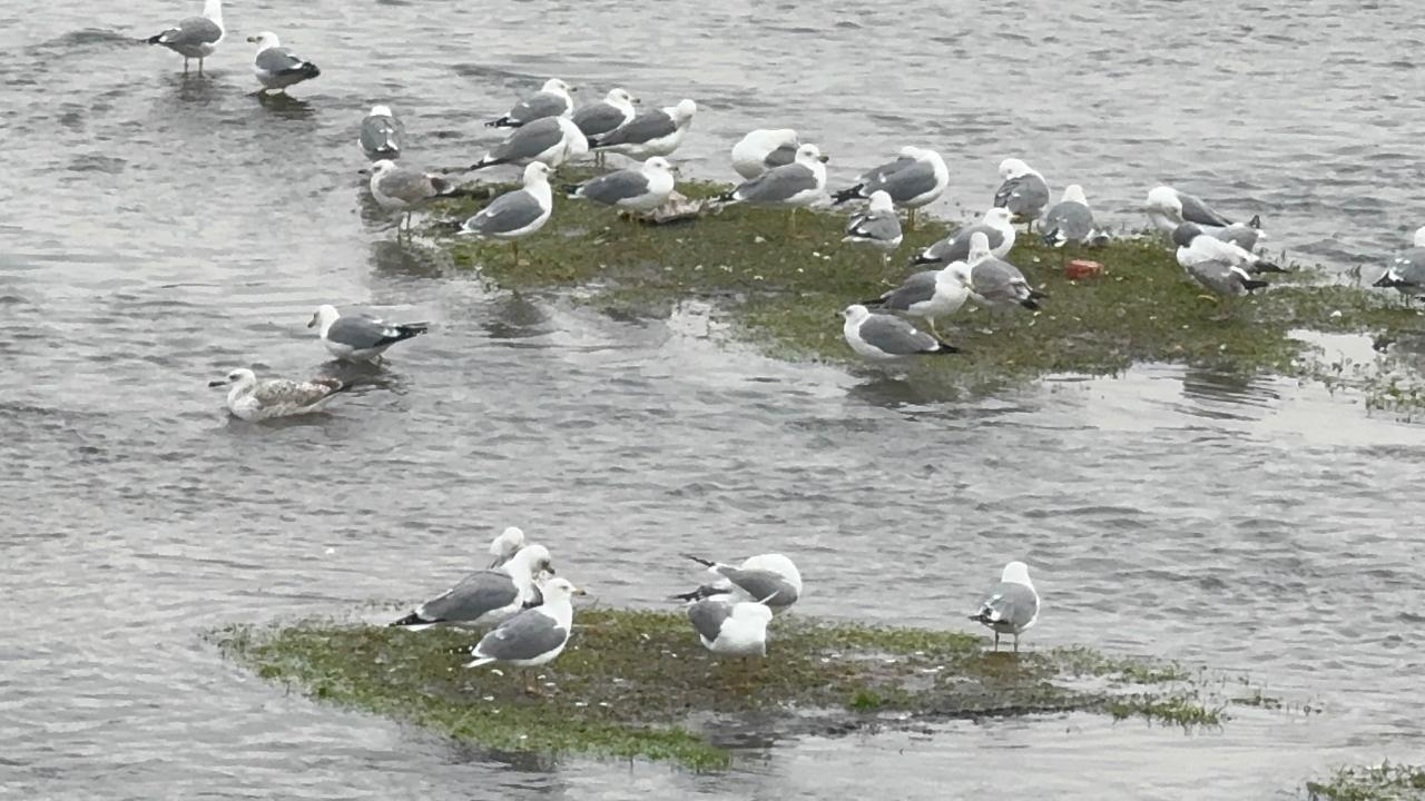 Bazı martılar suda yıkanarak kanatlarını temizlerken, bazıları da akıntıya karşı sakin bir şekilde bekledi. Beyaz ve gri tonlardaki martıların, nehir boyunca sıralanan küçük yeşil adacıklar üzerindeki görüntüsü adeta doğanın sunduğu bir tabloyu andırdı.