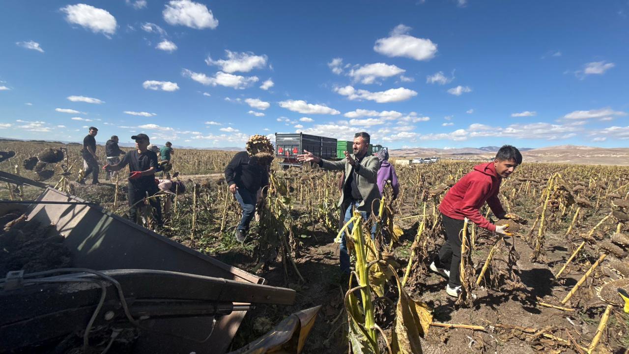 Ağrı’nın Tezeren Köyü’nde ayçiçeği hasadı tüm hızıyla sürüyor. Hasat çalışmalarına AK Parti Ağrı İl Başkanı İlhami Yıldız da katıldı.