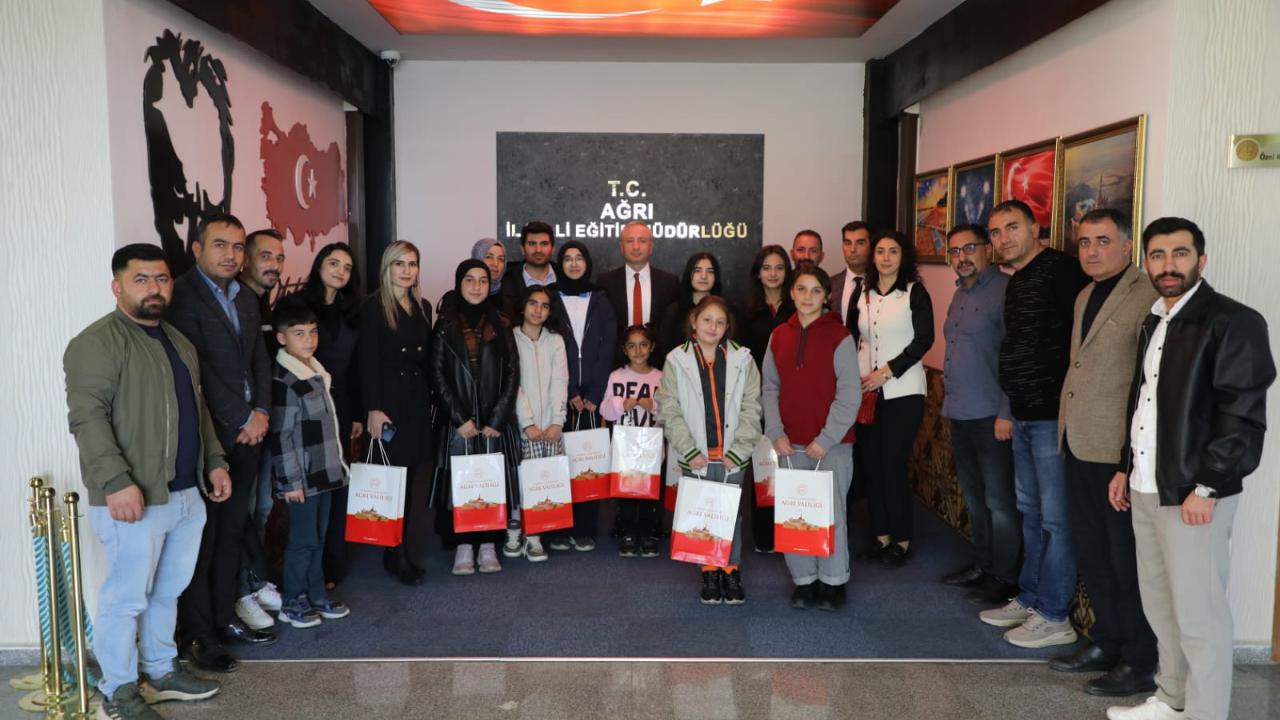 Cumhuriyet’in 102. yılı etkinlikleri çerçevesinde Ağrı İl Milli Eğitim Müdürlüğünce düzenlenen yarışmalarda öğrenciler, “Cumhuriyet” temalı eserleriyle hünerlerini sergiledi. Komisyon tarafından yapılan değerlendirme sonucunda dereceye giren öğrenciler için İl Milli Eğitim Müdürlüğü toplantı salonunda ödül töreni düzenlendi.