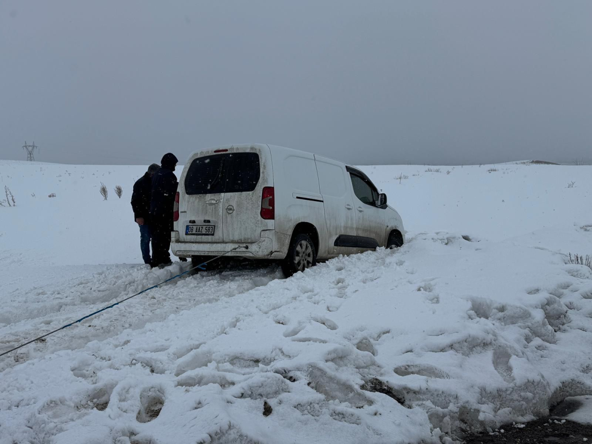 Çukurçayır ile Konuktepe köyleri arasındaki yolda seyir halinde olan hafif ticari araç, kar ve buzlanma nedeniyle kontrolden çıkarak yol kenarındaki kara saplandı.