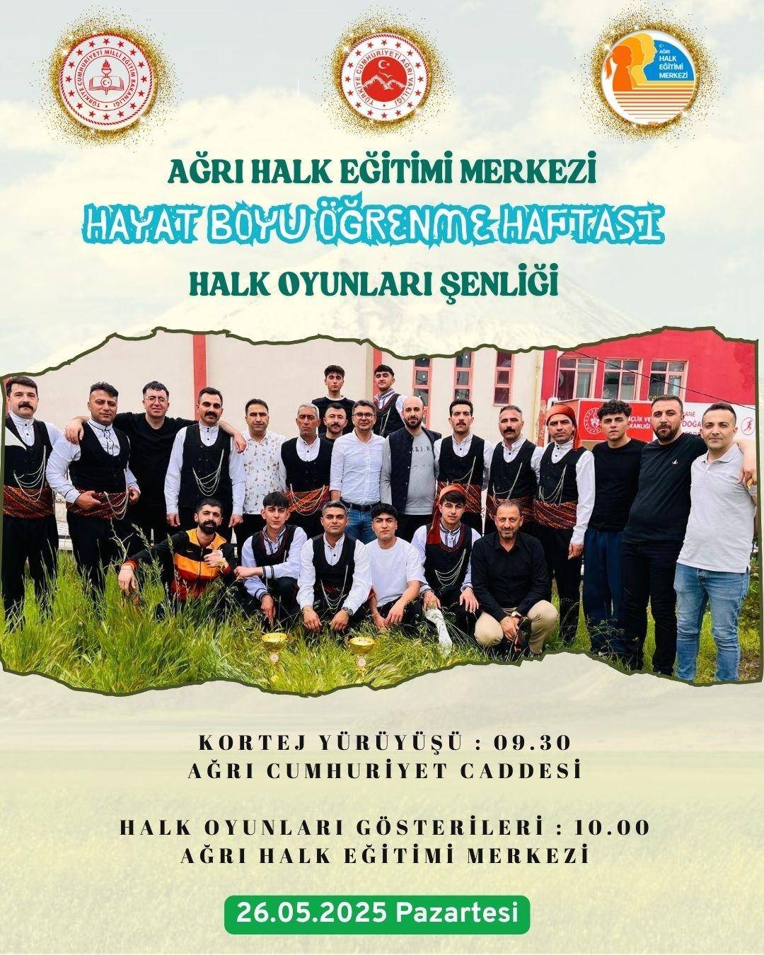 Ağrı Halk Eğitimi Merkezi tarafından düzenlenen Hayat Boyu Öğrenme Haftası etkinlikleri kapsamında, yarın halk oyunları şenliği düzenlenecek. Etkinlikler, sabah saatlerinde Cumhuriyet Caddesi’nde yapılacak kortej yürüyüşü ile başlayacak.