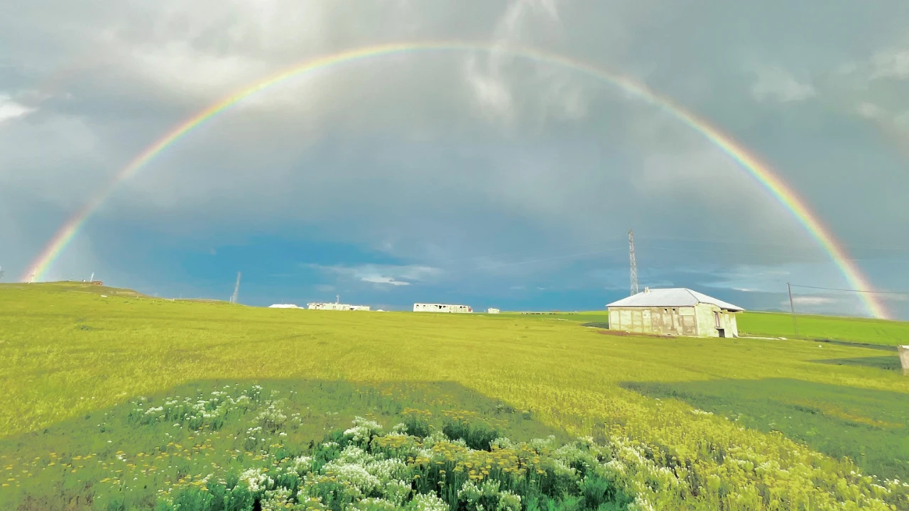 Ağrı’da günlerdir etkili olan sağanak yağışın ardından ortaya çıkan gökkuşağı, görsel bir şölen sundu. Yoğun yağmurun ardından bulutların arasından süzülen güneş ışığı ile oluşan gökkuşağı, gökyüzünü adeta renklendirdi.