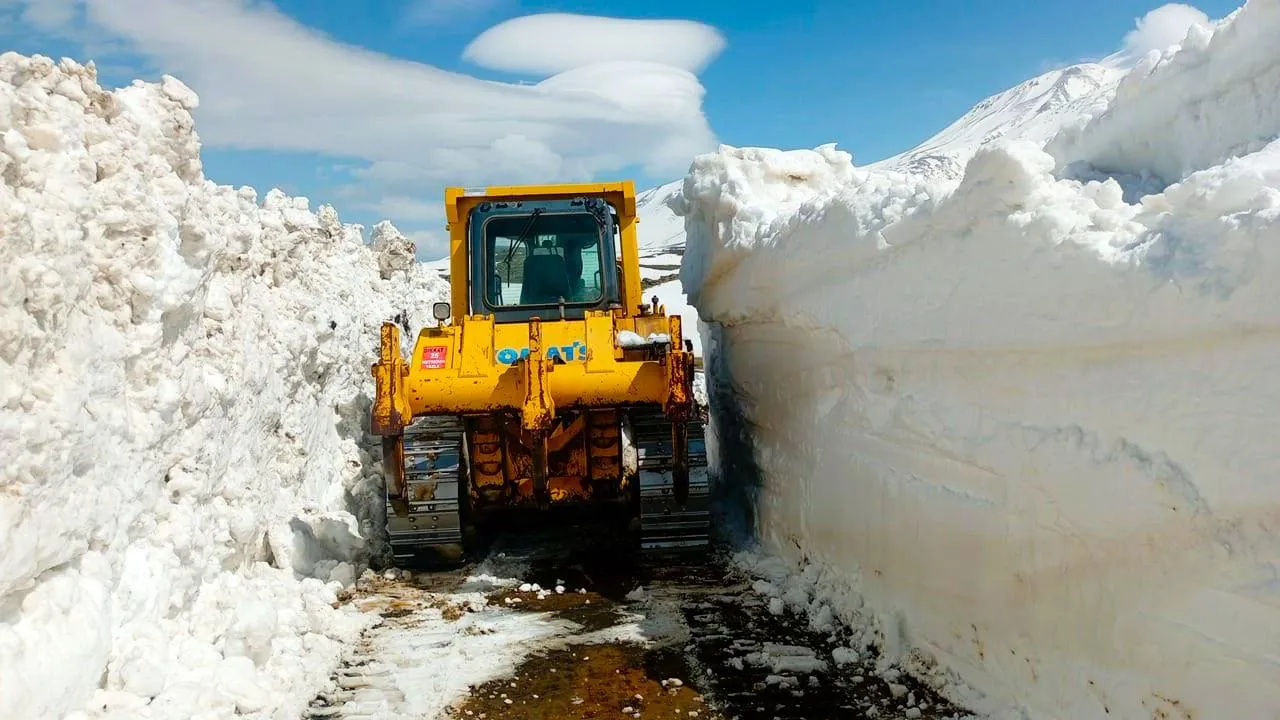 Ağrı’da baharın son günleri yaşansa da yüksek rakımlı bölgelerde kış etkisini sürdürüyor. Süphan Dağı’nın kuzey eteklerinde yer alan Patnos ilçesine bağlı Ergeçli Köyü’nün Zorova Mezrası’nda, karla mücadele çalışmaları tamamlandı.