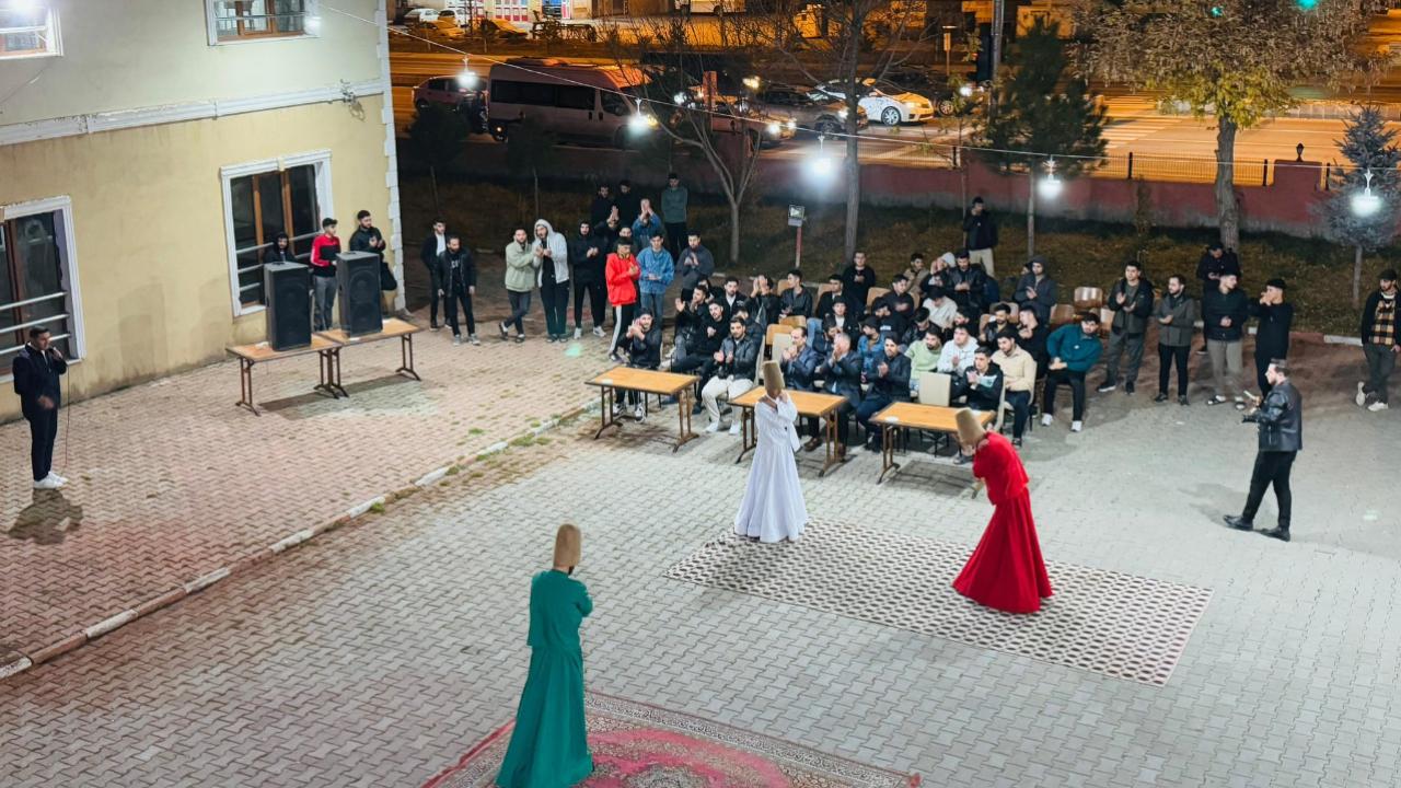 İshak Paşa Erkek Öğrenci Yurdu’nda düzenlenen programda, öğrenciler ilahi ve ezgiler eşliğinde unutulmaz bir moral gecesi yaşadı. Gecede sahne alan semazenlerin büyüleyici gösterisi, katılımcılara duygusal anlar yaşattı.