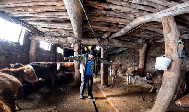 Erzincan’da besici Baki Kaya, ineklerine ‘Dilber’ şarkısını dinleterek süt verimini artırıyor.
