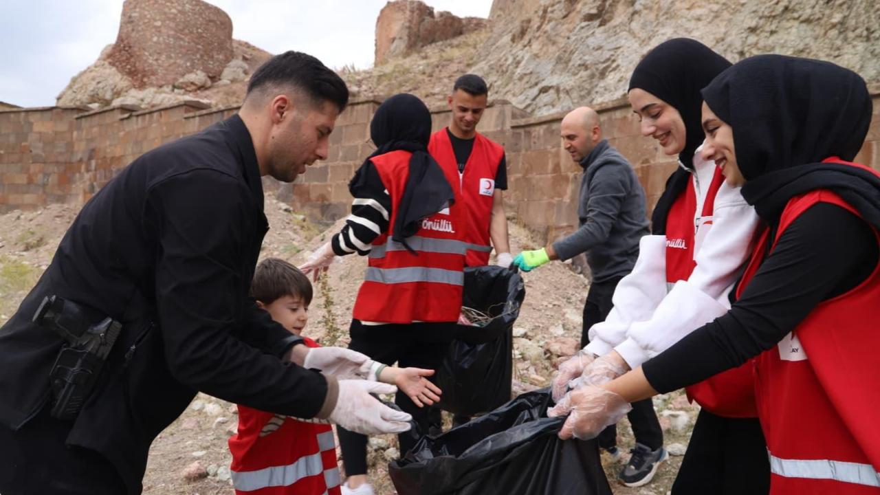 Doğubayazıt Kaymakamı Murat Ekinci, ilçe kurumları ve sivil toplum kuruluşlarıyla birlikte, İlçe Kızılay Şubesi öncülüğünde İshak Paşa Sarayı ve Ahmed-i Hani Türbesi çevresinde gerçekleştirilen çevre temizliği etkinliğine katıldı.