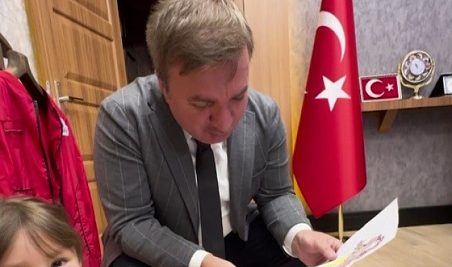 A 4 kağıdına çizdiği deniz kızı resmini Vali Aydoğdu'ya hediye eden minik Elif'in şirinliği gözden kaçmadı. Resmi alıp duvara asan Vali Aydoğdu, Elif'e oyuncak bebek hediye etti.