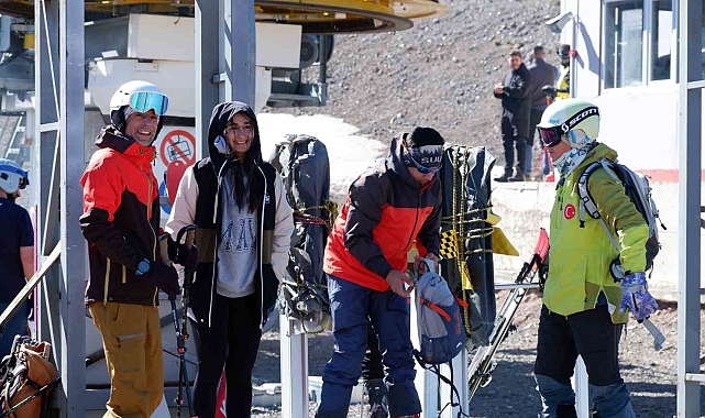 Erzurum'un dünyaca ünlü Palandöken Kayak Merkezi'nde haziran ayında zirvede kayak keyfi yaşandı. Babalar ile birlikte anneler de kayaklarını alarak yarıştı, onlara destek verdi.