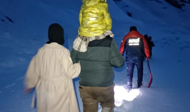 Hakkari'de kayak merkezine gitmek isteyen bir aile, araçlarının kara saplanması sonucu mahsur kaldı. Aralarında 3 çocuğun da bulunduğu 5 kişilik aile, AFAD ekipleri tarafından kurtarıldı.