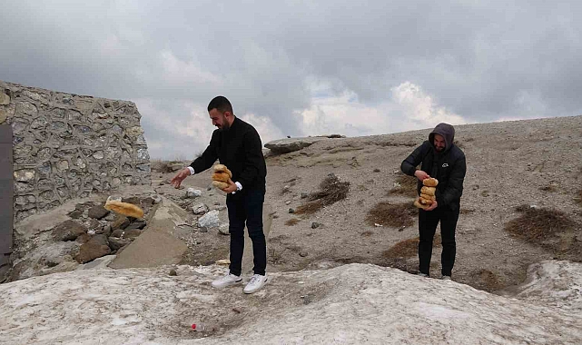 BİTLİS (İHA) – Bitlis'in Tatvan ilçesindeki Nemrut Kalderasına gelen hayvan severler, yaban hayvanlarına ekmek bıraktı.