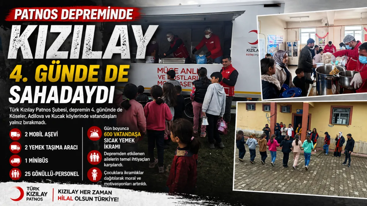 Kızılay ekipleri, depremin 4. gününde de Köseler, Adilova ve Kucak köylerinde vatandaşları yalnız bırakmadı. Bölgede yürütülen çalışmalar kapsamında 2 mobil aşevi, 2 yemek taşıma aracı ve 1 minibüs ile sahada hizmet verildi.