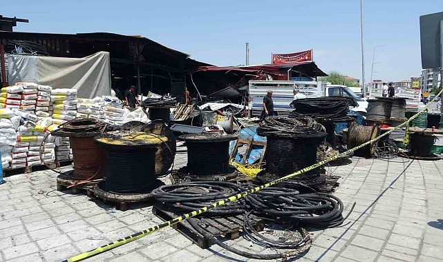 Malatya'da hırdavat ürünlerinin satışının yapıldığı konteyner çarşıda çıkan yangın sonrası iş yerleri kullanılamaz hale gelen esnaf yangından geriye kalan mallarını kurtarmaya çalışıyor.