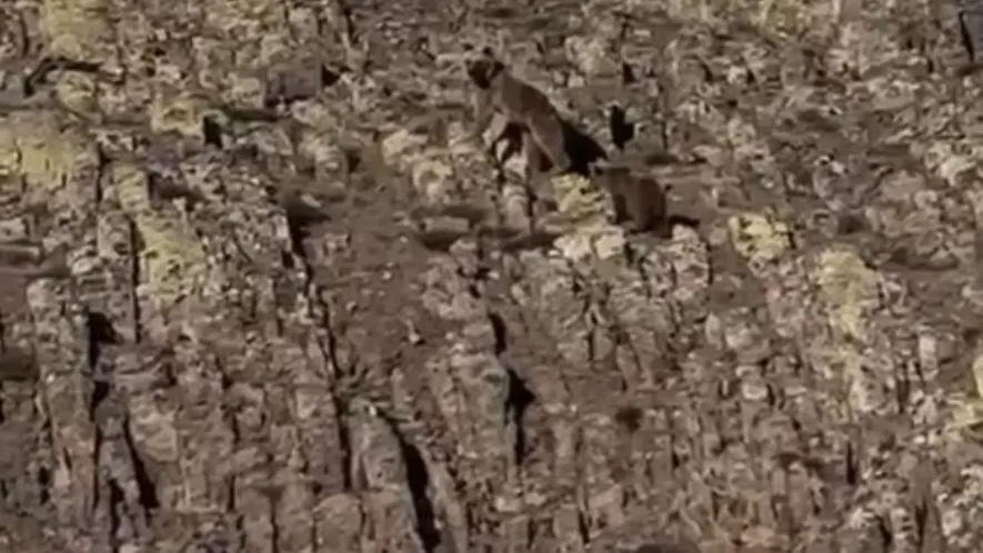 Vatandaşları fark eden anne ayı ve yavrusu bir süre sonra dağın zirvesine doğru ilerleyerek gözden kayboldu.