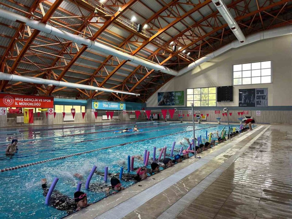 Muş Gençlik ve Spor İl Müdürlüğü tarafından yürütülen "Yüzme Bilmeyen Kalmasın" projesi kapsamında çocuklar ve gençler yüzme eğitimi alıyor. Müdürlüğe bağlı yarı olimpik yüzme havuzunda uzman antrenörler eşliğinde gerçekleştirilen eğitimlerde, katılımcılar hem yüzme öğreniyor hem de su sporlarının keyfini yaşıyor. Proje ile yüzme bilmeyen çocuk ve gençlerin spora kazandırılması, sağlıklı yaşam alışkanlıkları edinmesi ve sosyal gelişimlerine katkı sağlanması hedefleniyor.