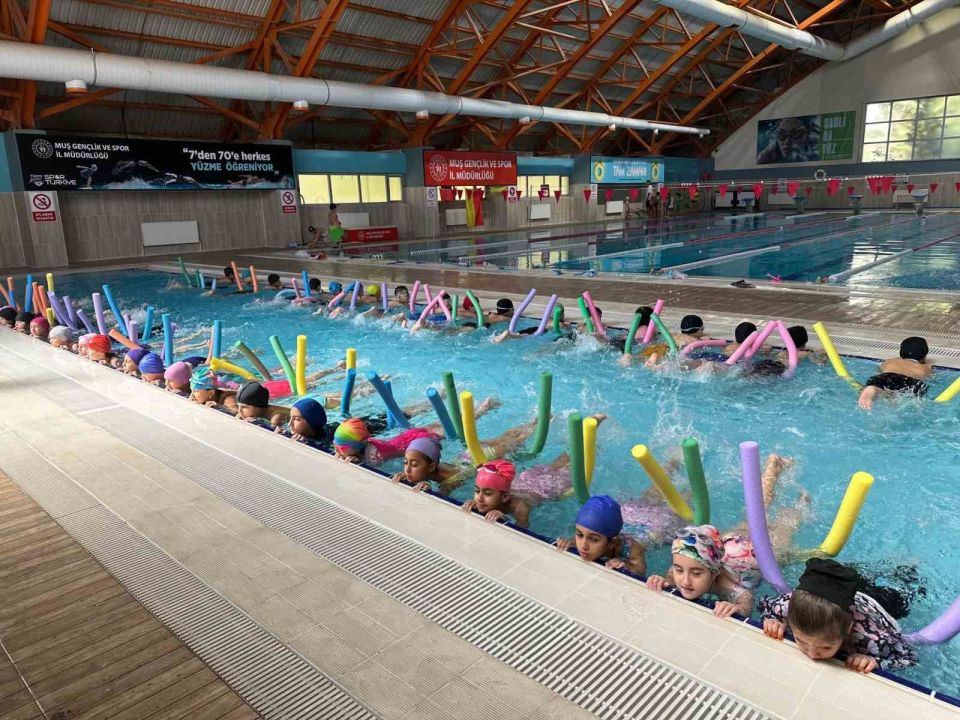 Muş’ta "Yüzme Bilmeyen Kalmasın" projesi çerçevesinde yüzlerce çocuk ve genç yüzme öğreniyor.