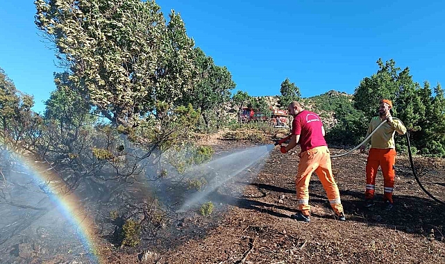 Bölgede etkili olan kuvvetli rüzgar nedeniyle yangın güçlükle söndürüldü.