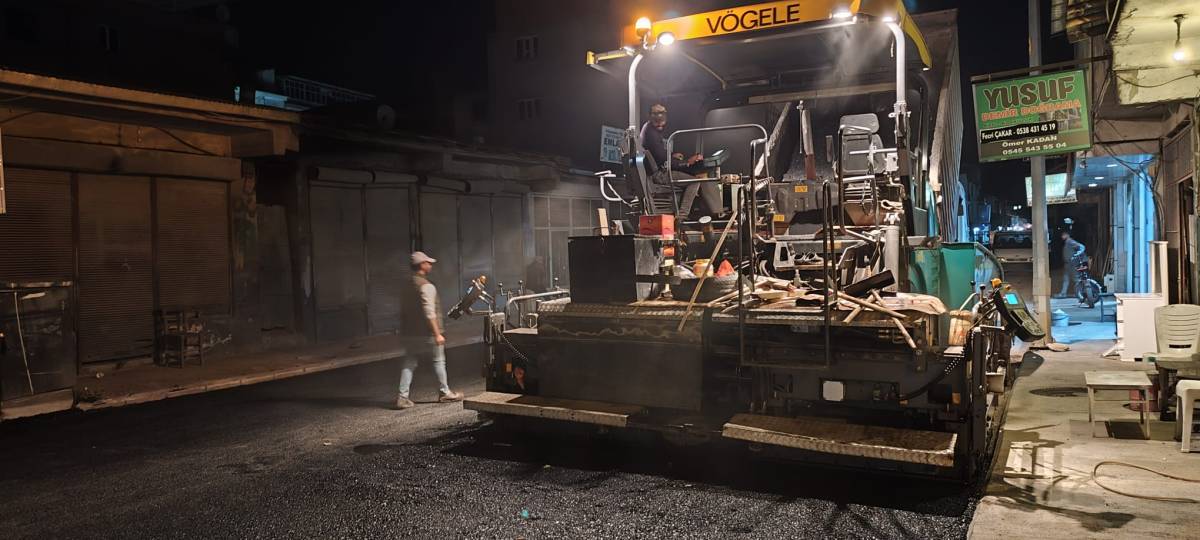 Bu kapsamda 14 Nisan Caddesinde ekipler geç saatlere kadar çalışarak asfalt serim çalışmalarını devam ettirdi.