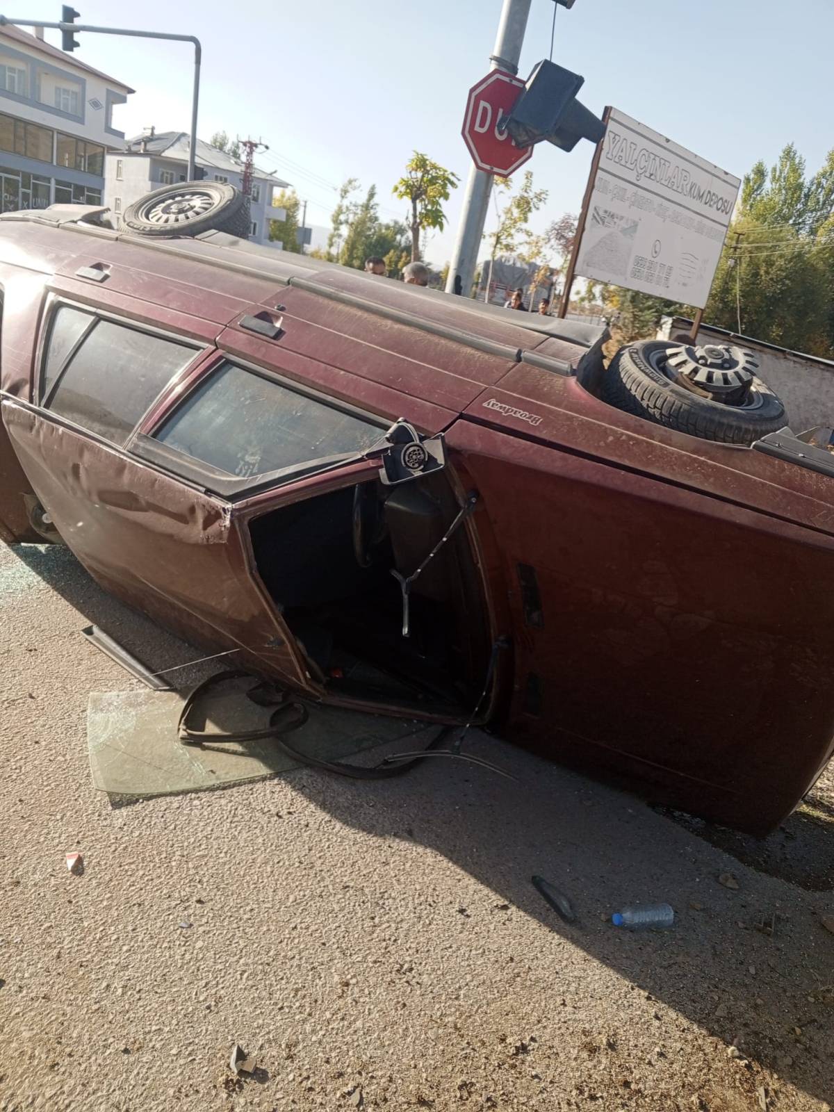 Edinilen bilgilere göre, Cengiz Çıkrık Okulu karşısında meydana gelen kazada kontrolden çıkan otomobil refüje çarptıktan sonra takla attı.