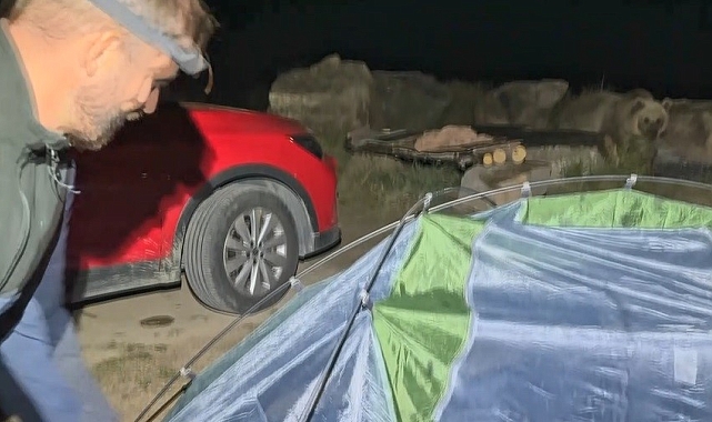 BİTLİS (İHA) – Bitlis'in Tatvan ilçesinde kış mevsimine kadar yerli ve yabancı turistlerin akınına uğrayan Nemrut Krater Gölü civarında bulunan anne ayı ve yavrular, Polonyalı turistin çadırına saldırdı.
