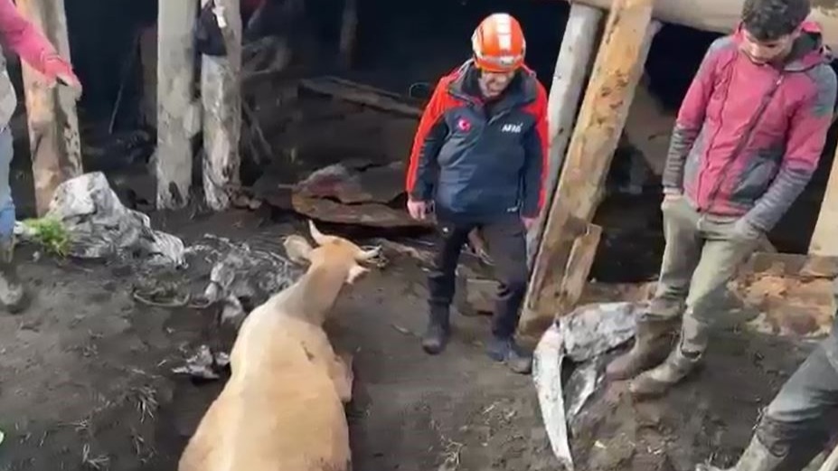 Ardahan’ın Göle ilçesinde sağanak nedeniyle çöken ahır çatısının altında kalan 19 büyükbaş hayvan kurtarıldı.