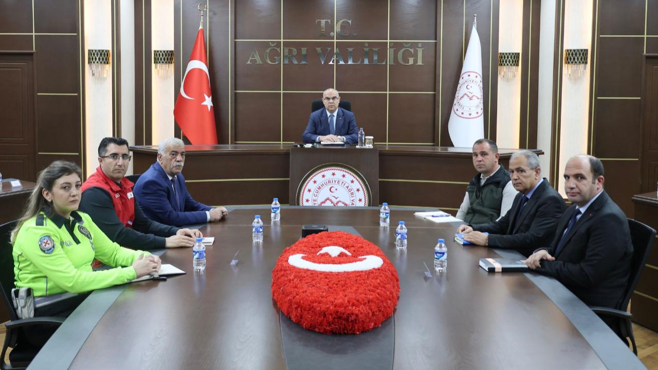Ağrı Valisi Mustafa Koç başkanlığında, vatandaşların kış mevsiminde huzur ve güven içinde seyahat edebilmelerini sağlamak amacıyla alınacak önlemlerin görüşüldüğü “2025-2026 Kış Mevsiminde Alınacak Trafik Tedbirleri” toplantısı gerçekleştirildi.