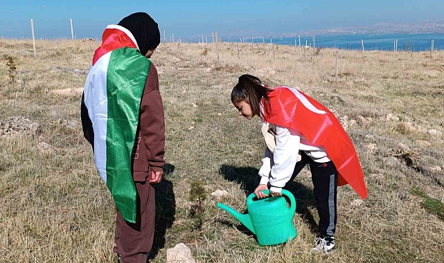 Van'ın Edremit Belediyesi tarafından İsrail'in saldırıları sonucu hayatını kaybeden Gazzeli çocukların adına fidan dikildi.