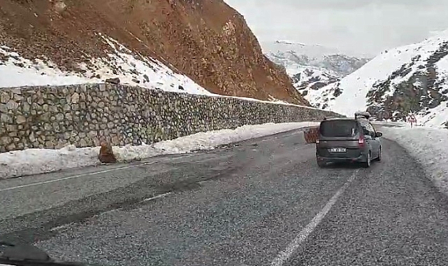 Bitlis'in Hizan-Tatvan karayolu üzerinde bulunan Panor Dağı mevkiinde yola düşen kaya parçaları sürücülere zor anlar yaşattı.