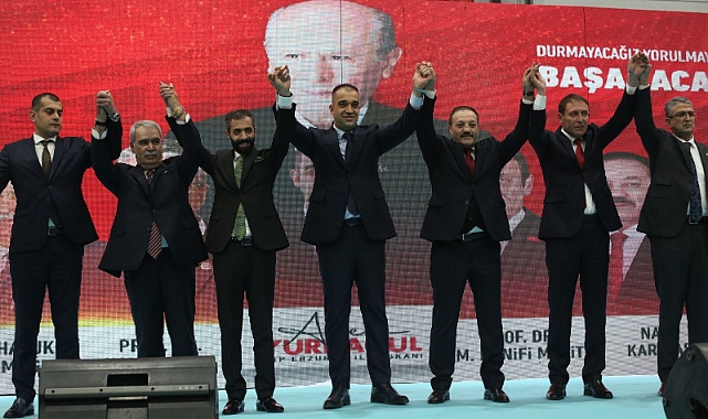 Programın açılış konuşmasını yapan MHP Erzurum İl başkanı Adem Yurdagül, ''Biz, önce ülkem ve milletim, sonra partim ve ben diyen, Türk milletini karşılıksız seven, fedakar ve cefakar, Türk. Mİlletinin bekasnının yegane savunucusu bilge lider Devlet Bahçelinin Türk milletine duyduğu sevdanın ordularıyız'' dedi. 14 mayıs 2023 tarihinde gerçekleşecek olan Cumhurbaşkanlığı ve 28. Dönem milletvekili genel seçimlerinde Erzurum'da tarih yazacaklarını da ifade eden Yurdagül, ''Bugün, Erzurum’da tarih yazacak olan bozkurt duruşlu milletvekili adaylarımızın ve siz kıymetli dava erlerinin, yol arkadaşlarımızın bismillah demesi için bir araya gelmiş bulunuyoruz. Unutulmasın ki, 14 mayıs seçimi sadece Türkiye’yi değil, milletimizin ferasetini, birlikteliğini, duruşunu ve kudretini hazmedemeyenleri de ilgilendiren bir seçimdir. Aynı zamanda Umudunu Türkiye’ye ve Cumhur ittifakının zaferine adamış mazlum coğrafyaların kurtuluş mücadelesi ve bekasının da seçimidir'' dedi.